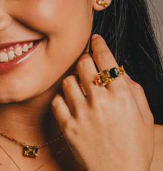 Assim como os primeiros raios do amanhecer, sua pedra central capta e devolve a luz com intensidade única. O design valoriza as mãos com leveza, criando um brilho que se destaca de forma natural e elegante. Mais do que um acessório, o Anel Aurora representa ciclos que se iniciam e histórias que se renovam. É uma peça que carrega...